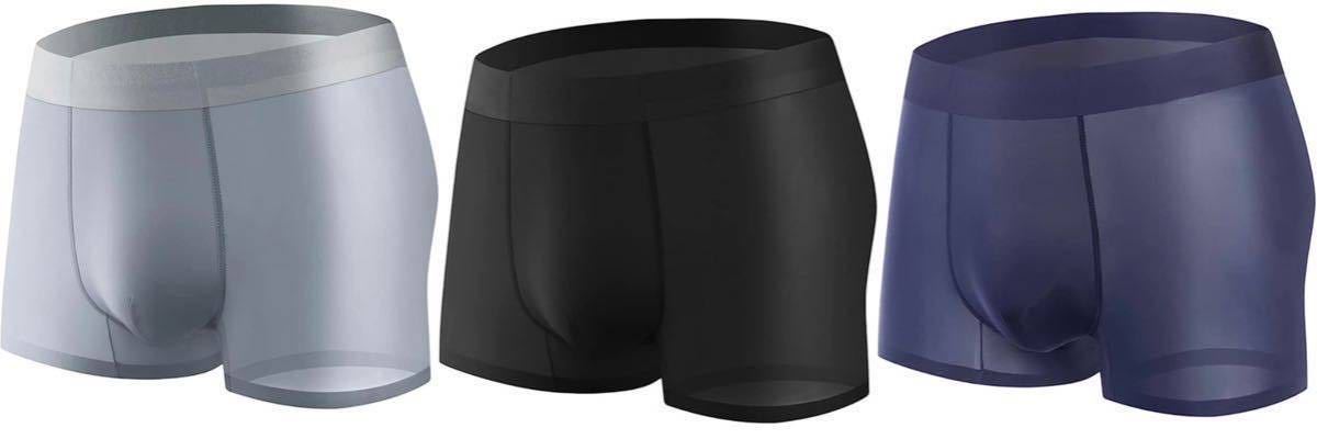 - ボクサーパンツ メンズ 極薄 アイスシルクパンツ 抗菌防臭 吸汗速乾 履き心地 通気 ストレッチ 下着サイズ3枚2XL