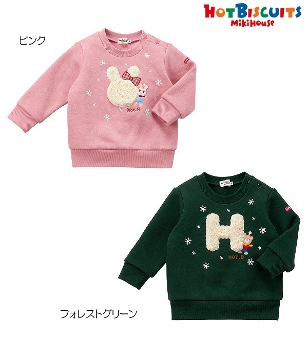 - 即決です!【ミキハウス】ホットビスケッツ新品未使用♪mikihouse 90cm 85cm~95cm ボアモチーフ裏起毛トレーナー 男の子 カラー:グリーン