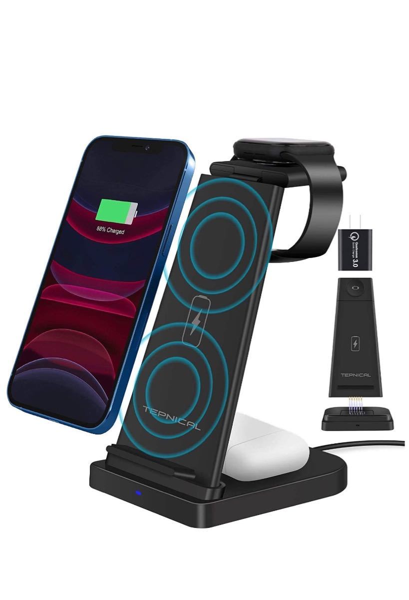 - ワイヤレス充電器 Qi認証 3 in 1急速充電15W/10W/7.5W