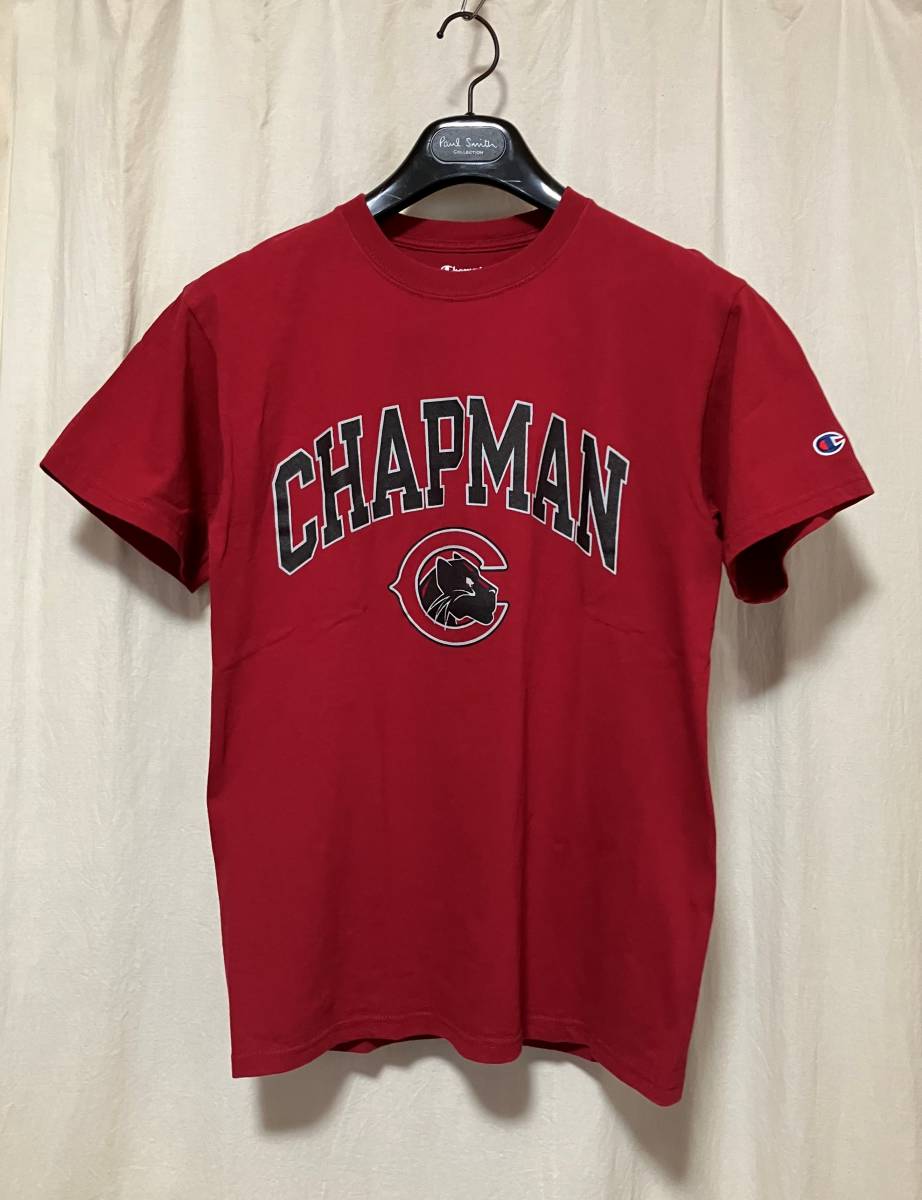 > Champion チャンピオン プリント入り半袖Tシャツ 深い赤系 S 中古品 CHAPMAN チャップマン