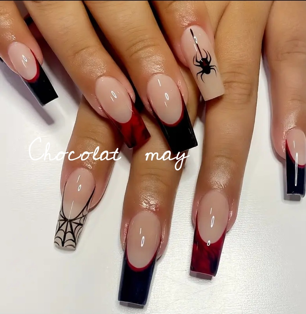 - ネイルチップ ハロウィン スパイダー クモの巣 ファッション 小物