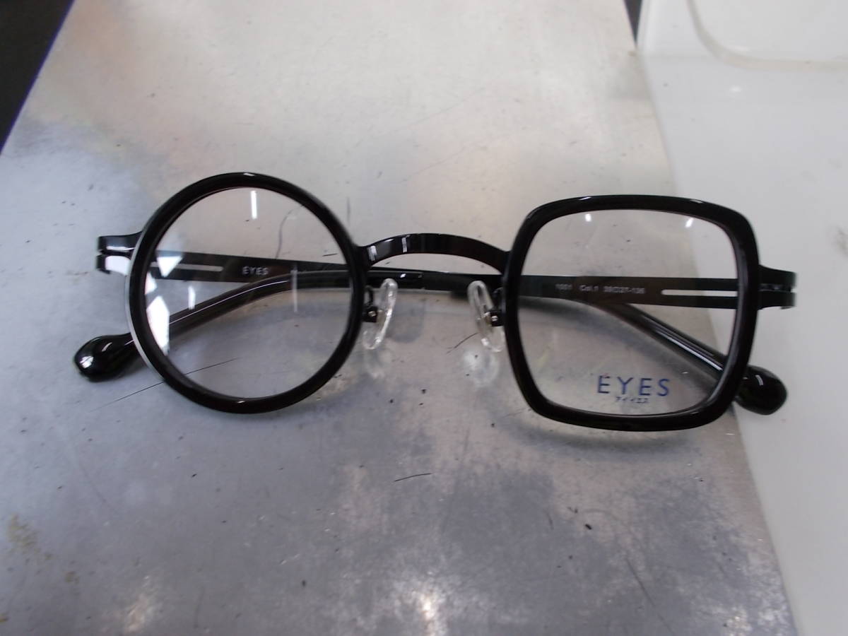- E'YES 眼鏡フレーム 1001-1 お洒落 セル×メタル コンビフレーム 奇抜な 左右非対称 アシンメトリー デザイン 丸×四角形