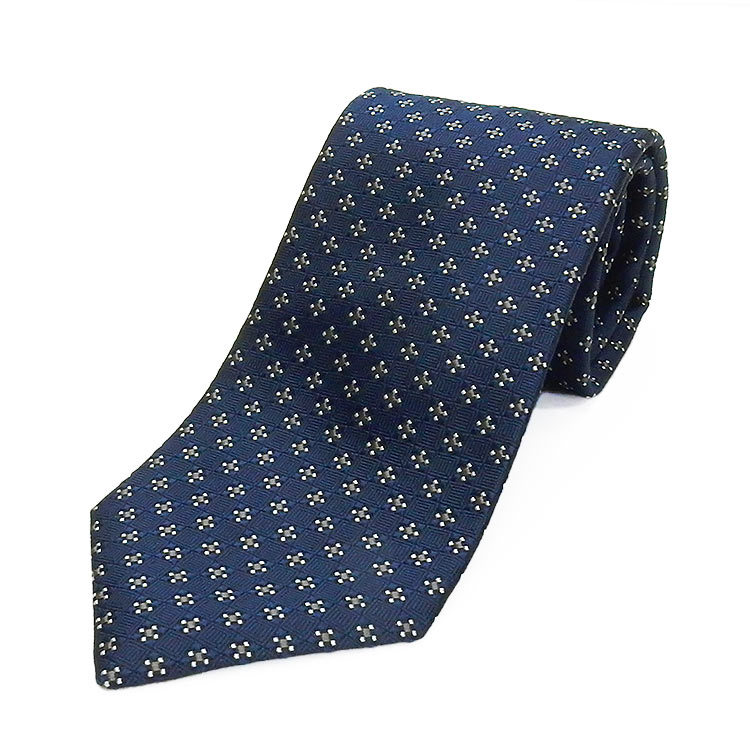 - 国産 高品質ネクタイ 濃紺 小紋格子 シルク100% 京都縫製 メール便送料無料 KY-AK07