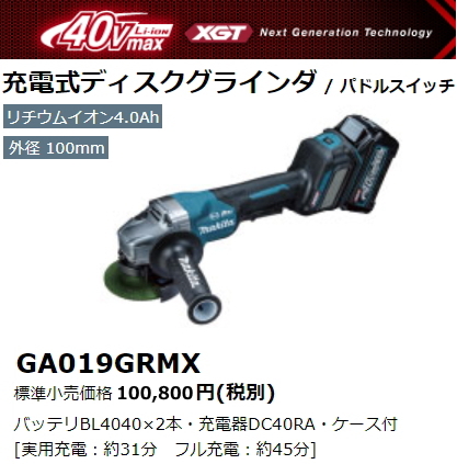 - マキタ 100mm 充電式 ディスクグラインダ GA019GRMX 40V 4.0Ah 新品