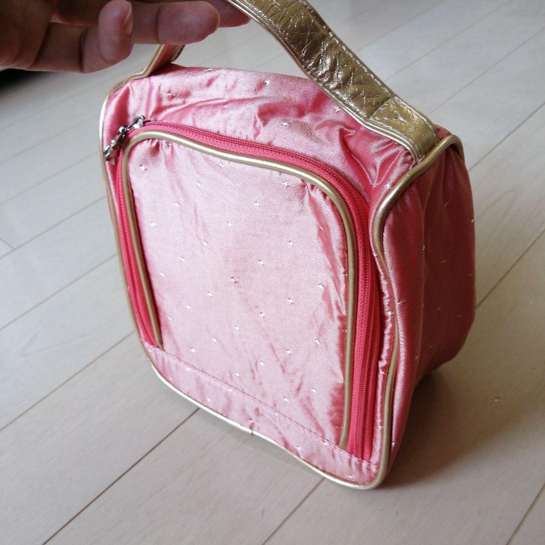 - コスメポーチ 縦型 両開き ブラシ立て ファスナーコの字 サーモンピンク