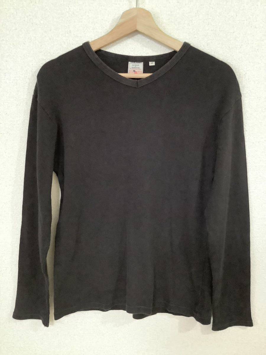 - AVIREX U.S.A アビレックス 長袖カットソー サーマル ワッフル編み Vネック ブラック アメカジ メンズ 古着