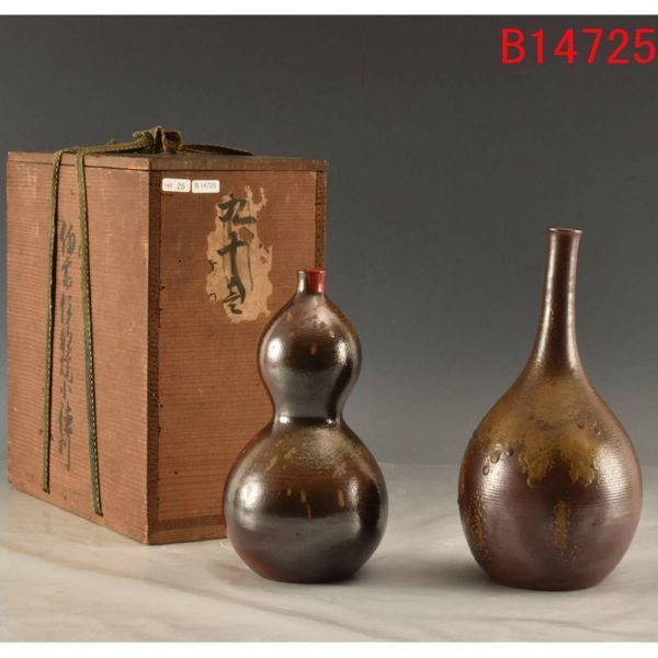 - B14725 献上手 備前伊部焼小徳利花入 二ツ入:本物保証 送料無料