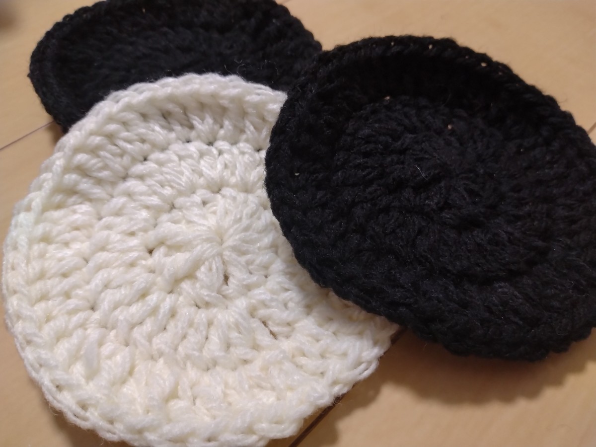 - 円形コースター3枚セット☆ブラック×アイボリー