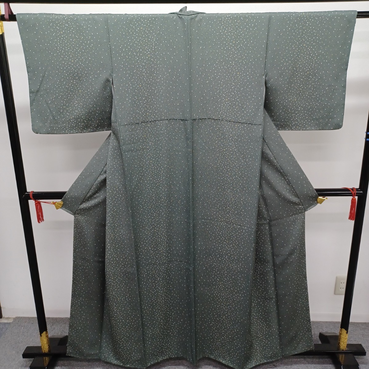 - 石336) 小紋 着物 グリーン 緑 卒業式 成人式 お茶会 パーティー 衣装 撮影 和装 230919