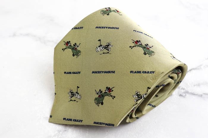 - 東京ディズニーランド シルク ミッキー ストライプ柄 小紋柄 総柄 ブランド ネクタイ メンズ ベージュ Disney