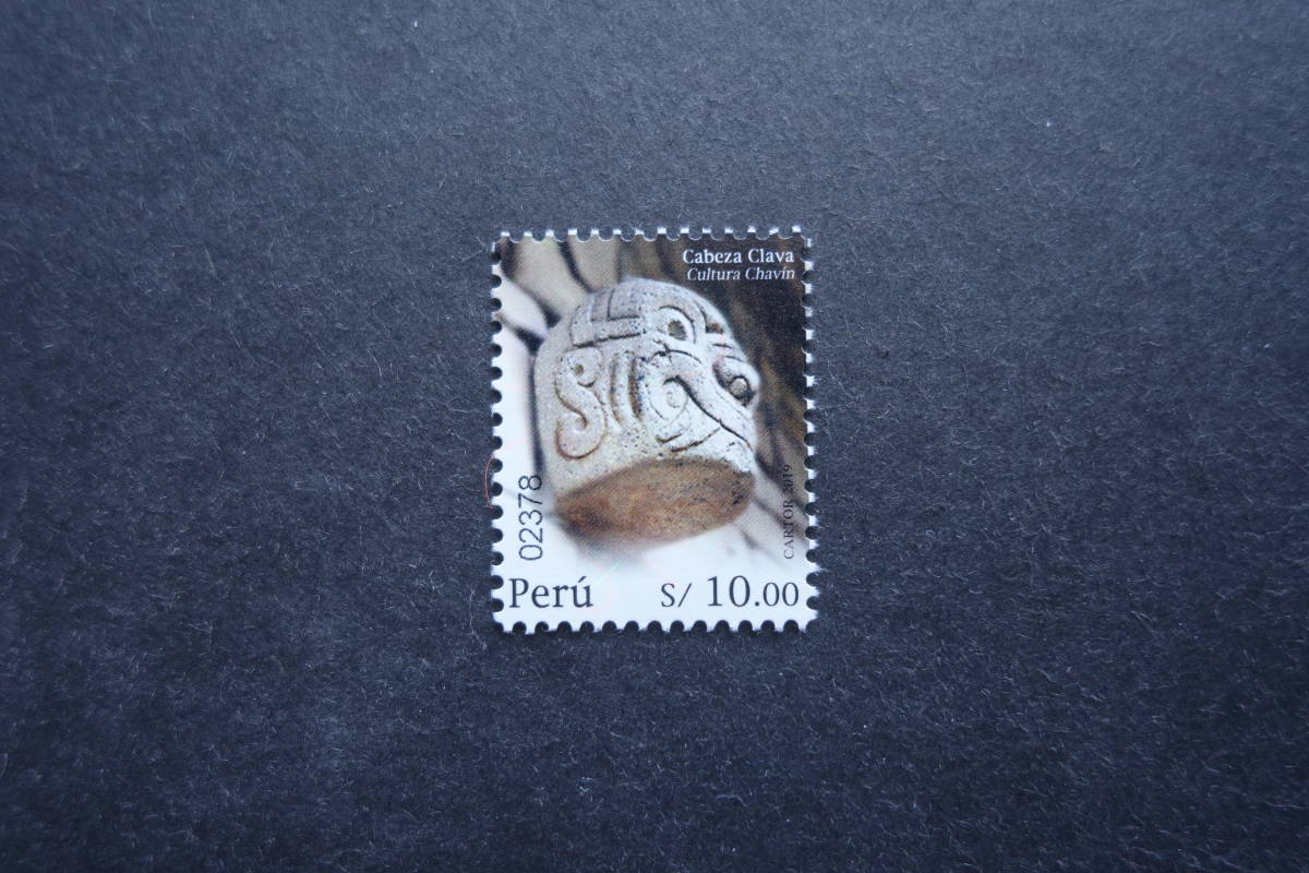 - 外国切手:ペルー切手 「Culture Chavin 遺跡 Cabeza Clava (カベッサ・クラバ)」高額面 1種完 未使用