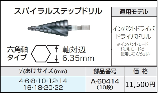 > マキタ スパイラルステップドリル 4~22mm A-60414 六角軸タイプ 新品