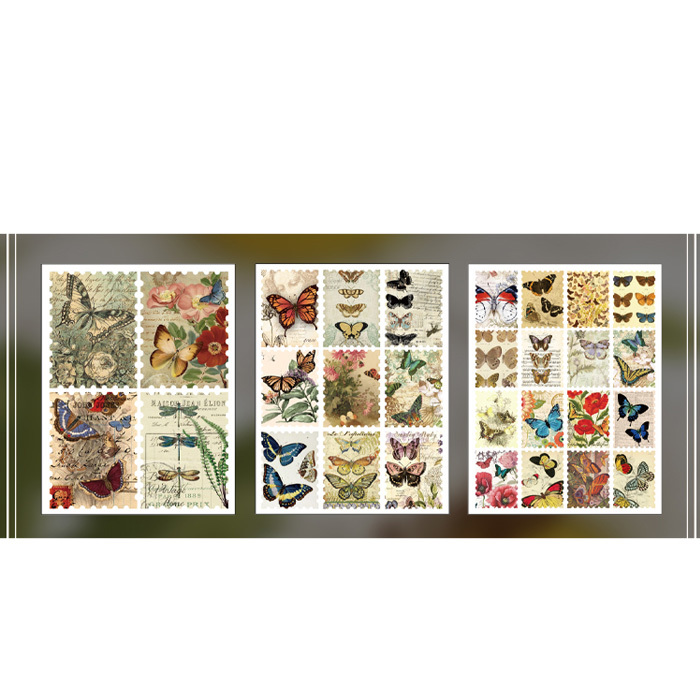 - 6シートセット シール 蝶 虫 バタフライ アンティーク ビンテージ ステッカー デコステッカー コラージュ レトロ 0534-2