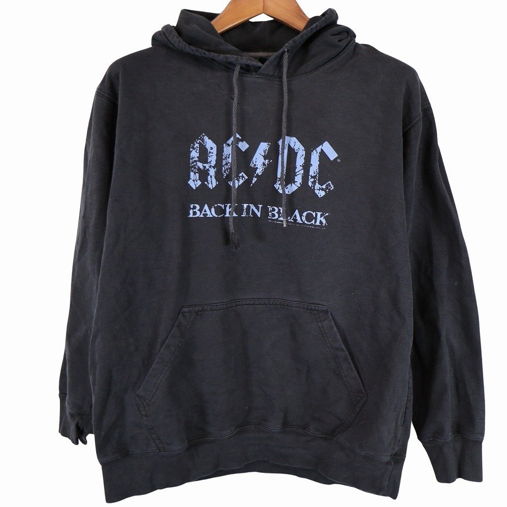 > ACDC ROCKWARE ACDC ロゴパーカー 音楽系 バンド ハードロック リバースタイプ ブラック (メンズ M) 中古 古着 O3959