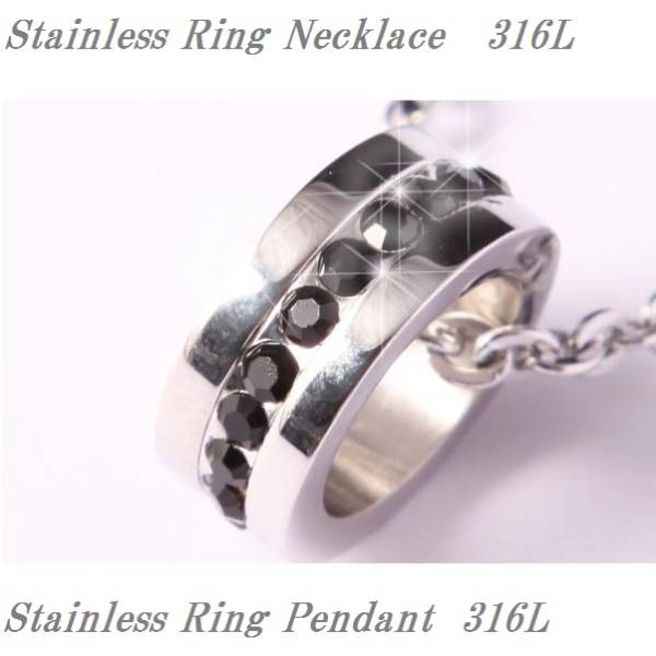 - ステンレス リング ネックレス ジュエリーステンレス 316L BK