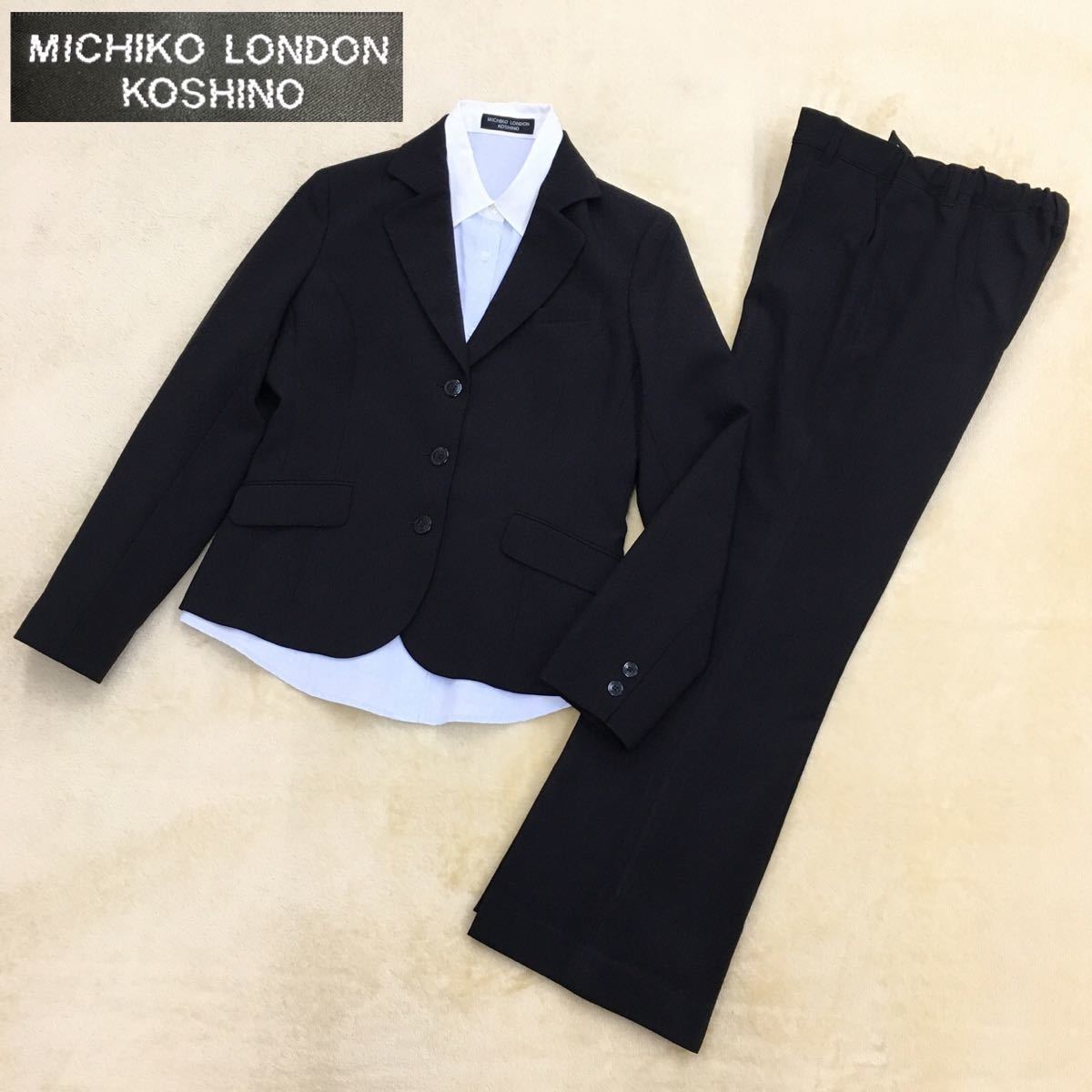 > ミチコロンドンコシノ 上下スーツ シャツ 3点セット ブレザー ジャケット フレアパンツ シャドーストライプ レディース サイズ165A