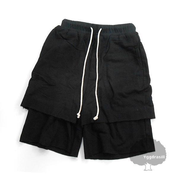 - YGG★新品 ダブル スウェット サルエル ハーフパンツ 黒 M 短パン ショートパンツ レイヤード スエット ブラック メンズ