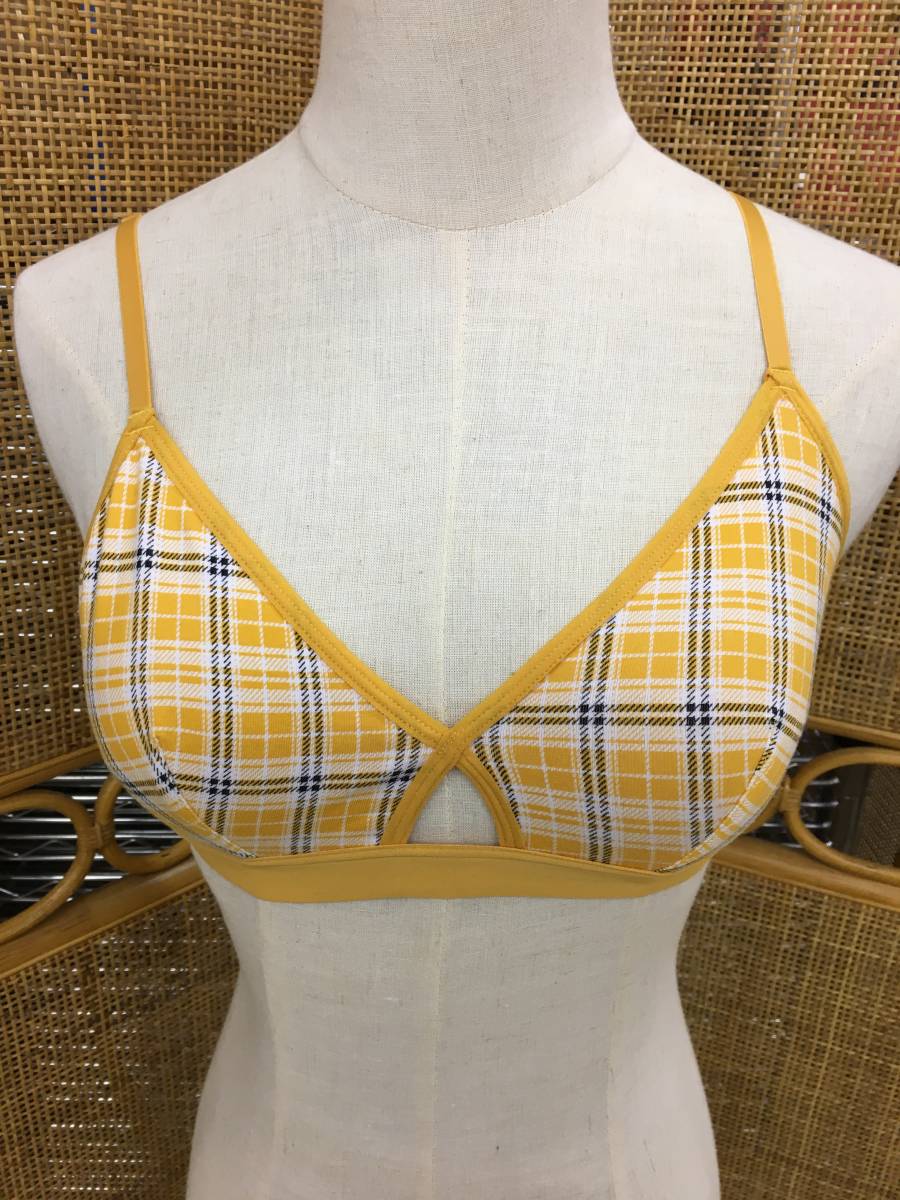 - 【2004】レディースブラジャー イエロー チェック バスト85~90cm(117-1)*【250101000078】