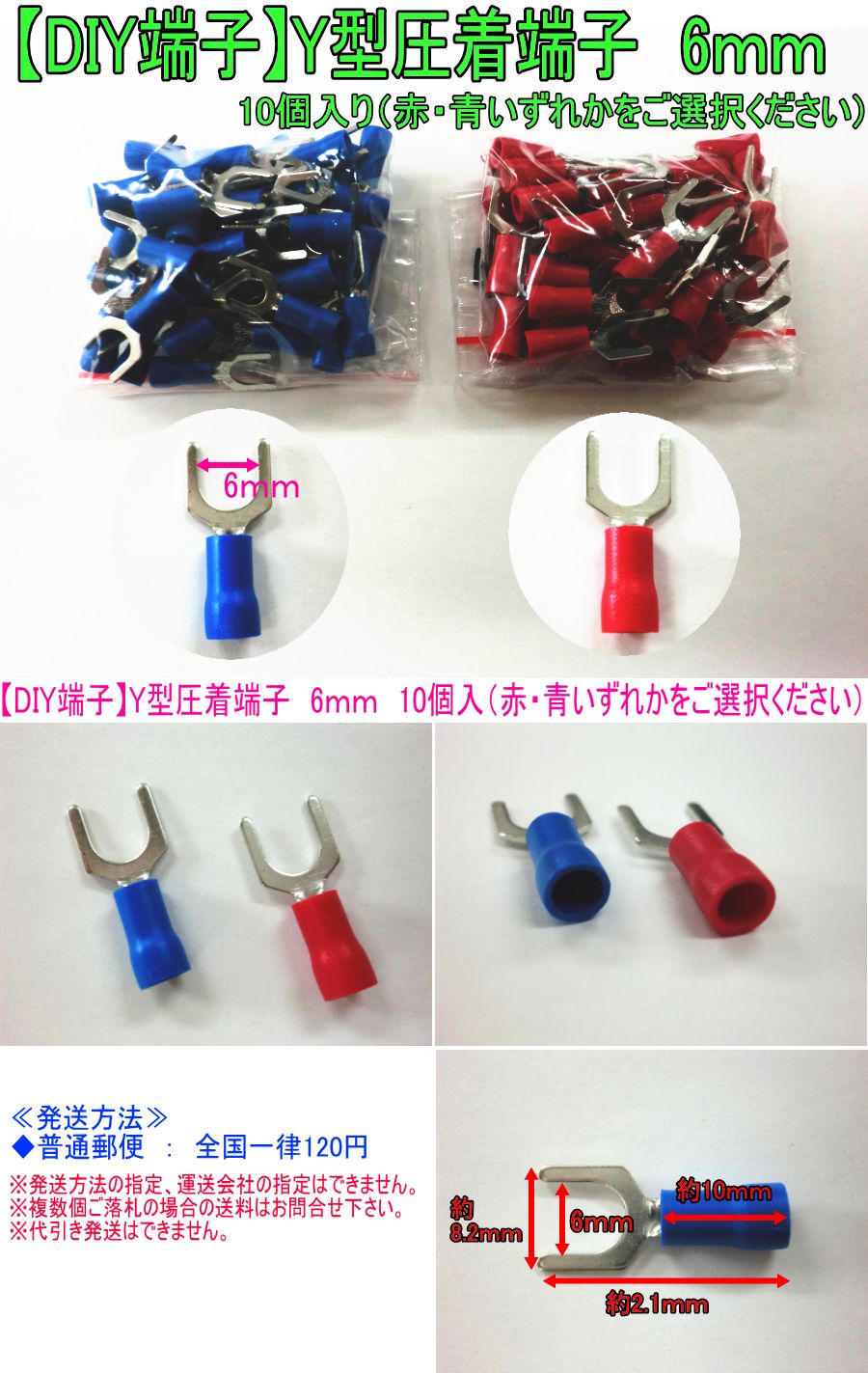 > 【DIY端子】 Y型圧着端子 6mm 12V24V 10個入 接続・分岐に!①