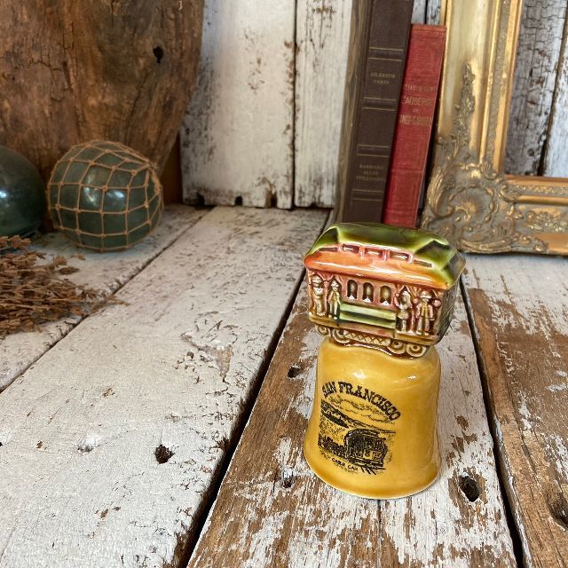 - ≫ヴィンテージ*陶器製 サンフランシスコ ケーブルカー ベル*呼び鈴*乗り物*USA アメリカン ビンテージ*アンティーク*スーベニア*古道具