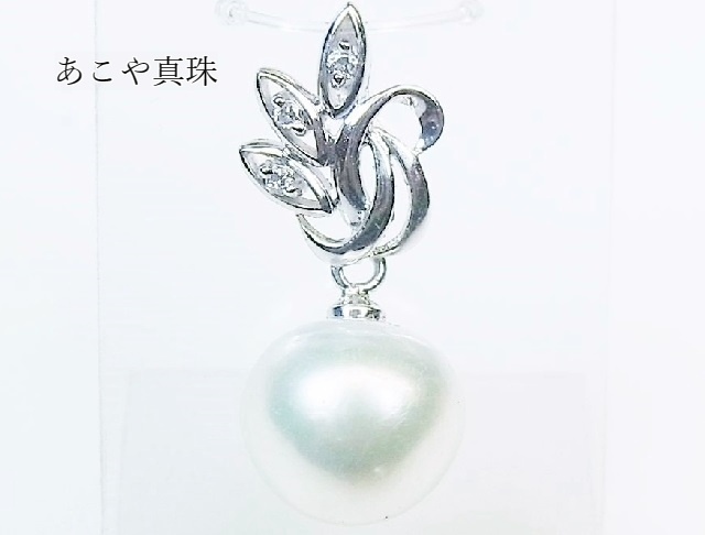 - 大粒 あこや真珠・ダイヤモンド入りPtペンダントトップ