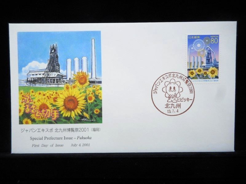 - ふるさと切手 ジャパンエキスポ 北九州博覧祭2001 2001年7月4日 北九州 初日カバー FDC 日本切手 L-127