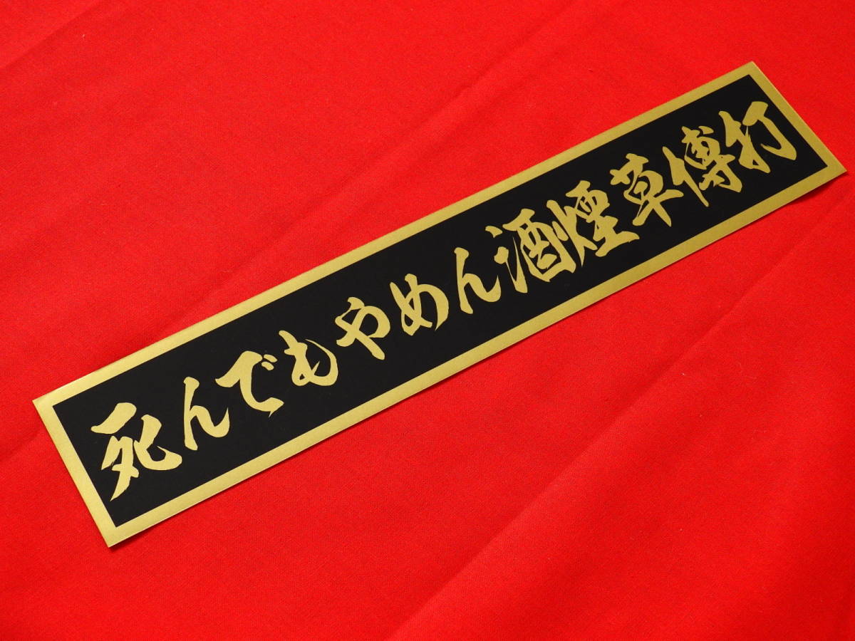 > ◆DT43 送料無料【死んでもやめん酒煙草博打】 防水ステッカー 金/ゴールド スクリーン デコトラ アートトラック ダンプ アンドン 暴走族