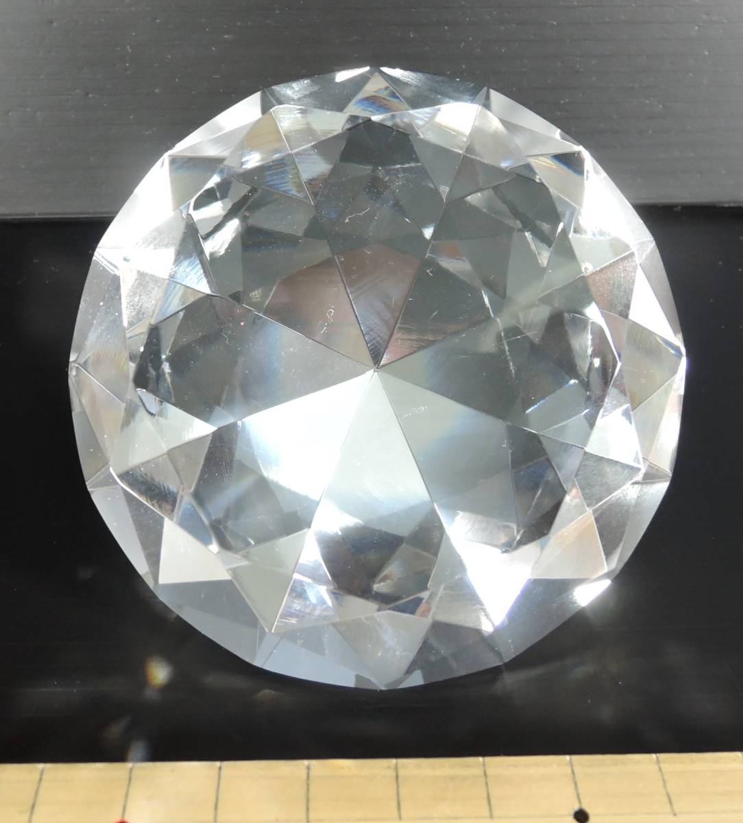 - ☆A305■クリスタルガラス製 置物 ダイヤモンドカット■直径79mm/ダイヤ型