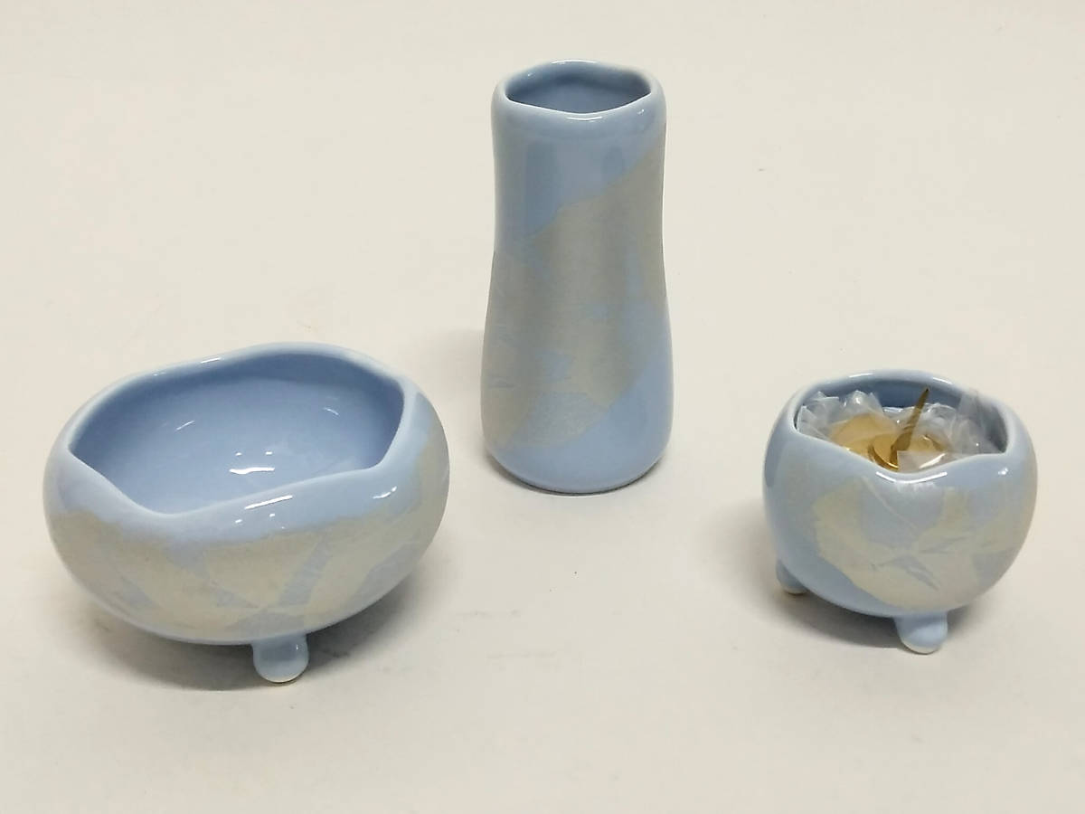 > 【送無】美濃焼 仏具3点セット ブルー系 ペット仏壇 ミニ仏壇などに 香炉 火立 花立 モダン仏具 日本製陶器 シンパープル ほのか