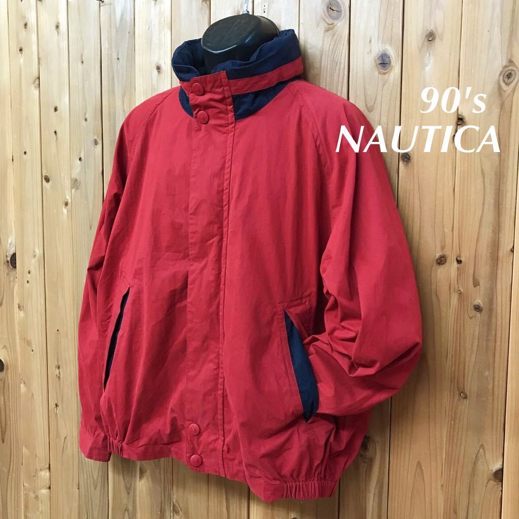 - 90's /NAUTICA /ノーティカ メンズXL 長袖ジャケット マウンテンパーカー 赤 フード収納 ハイネック 防寒 アメカジ USA古着 ビンテージ