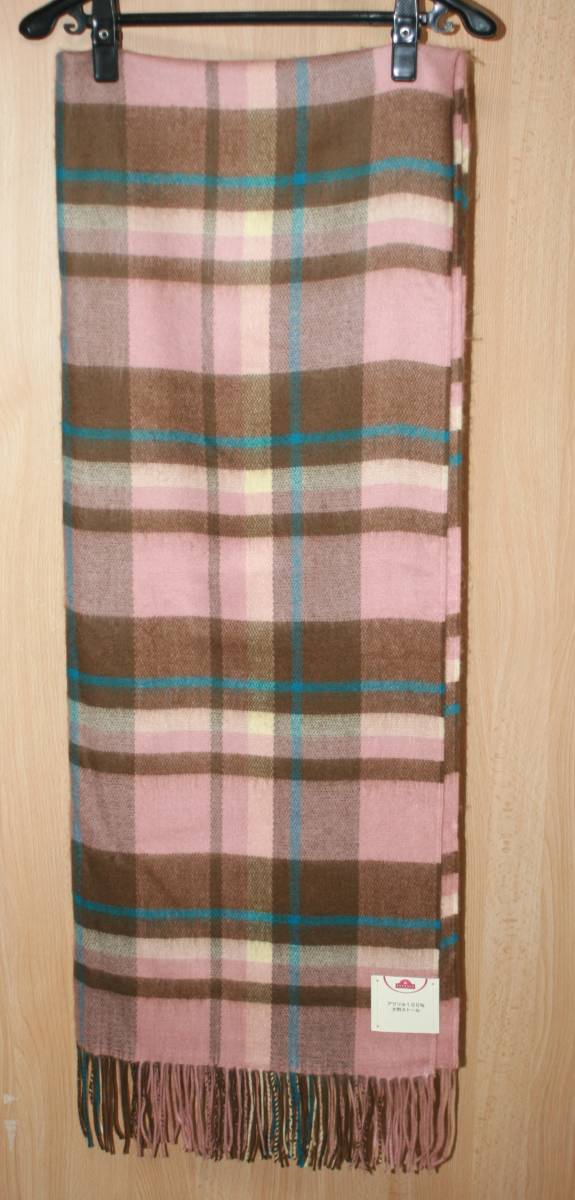 - ★未使用 トップバリュ 大判ストール アクリル100% チェック フリンジ マフラー 羽織★
