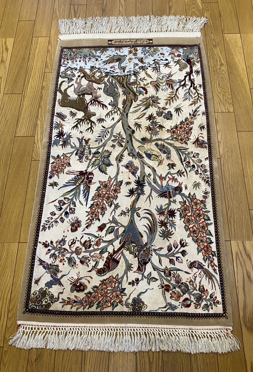 > ⑨ ペルシャ絨毯 イラン直輸入品 シルク・コルクウール 手織り イスファハン産 カーペット [65×115cm] 未使用品 重さ2500g
