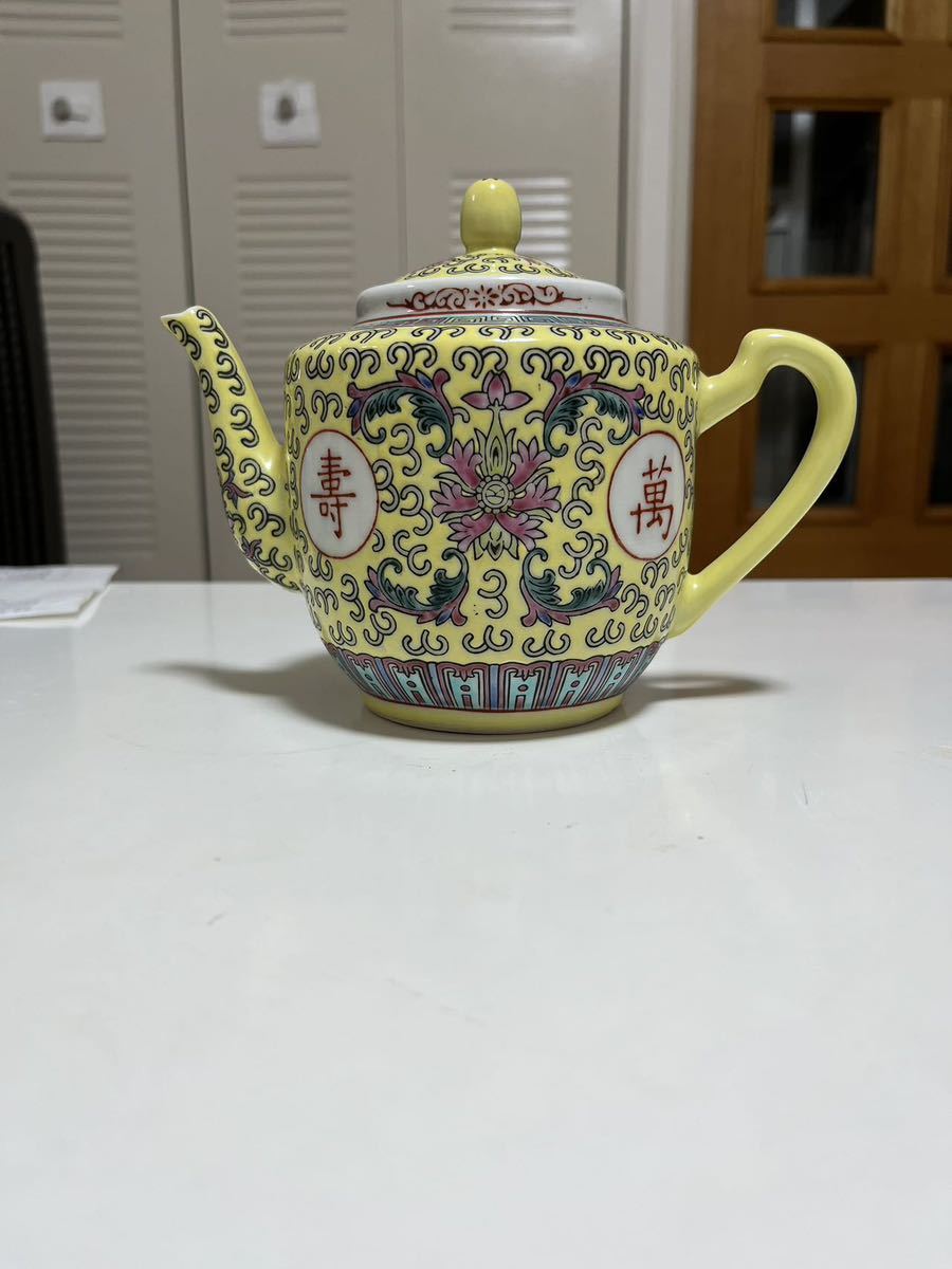 - 中国美術 古陶器 景徳鎮 萬壽無疆急須 お祝い品 60年代