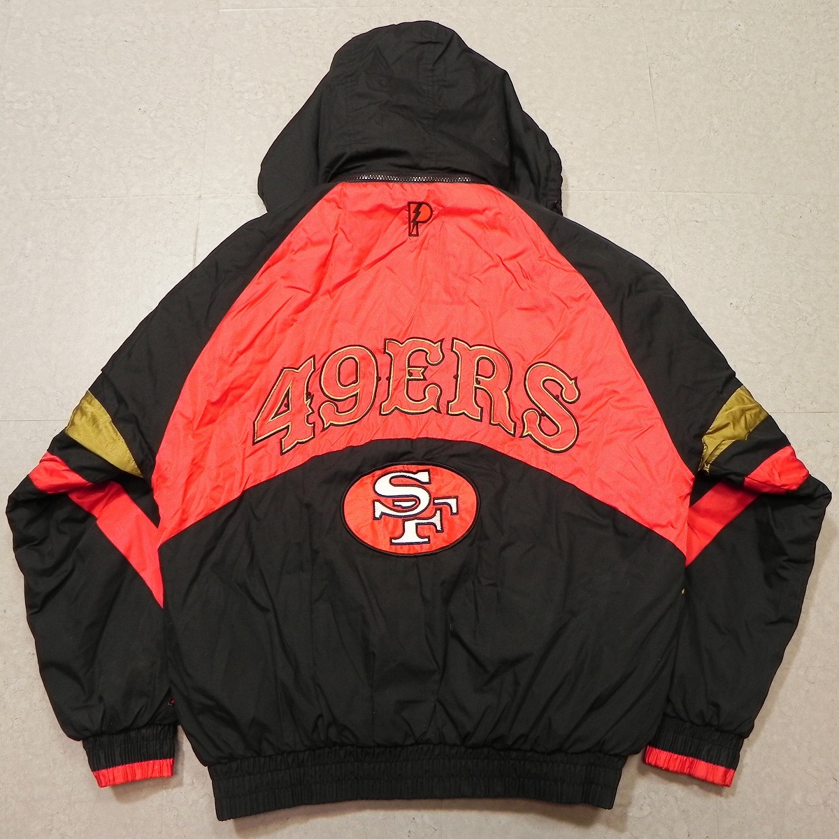 > 90's PRO PLAYER NFL San Francisco 49ers サンフランシスコ フォーティナイナーズ 中綿入り ジャケット M (大きめ) フード付き ★e