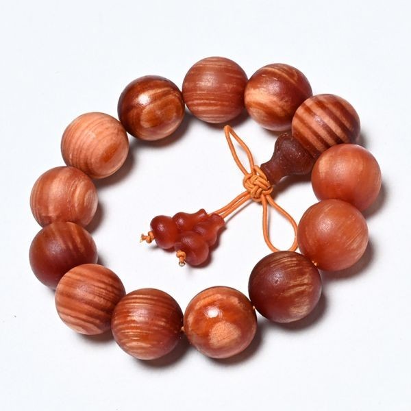 - [EasternStar] 帝王血龍木 ヒノキ ブレスレット お守り 数珠 念珠 木珠 18mm 13玉 透光 ひょうたん