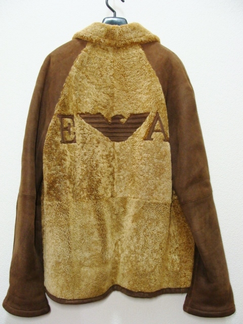 - EMPORIO ARMANI エンポリオアルマーニ ◇ ムートン レザー 皮 革 切替 バック ロゴ マーク ブルゾン ジャケット