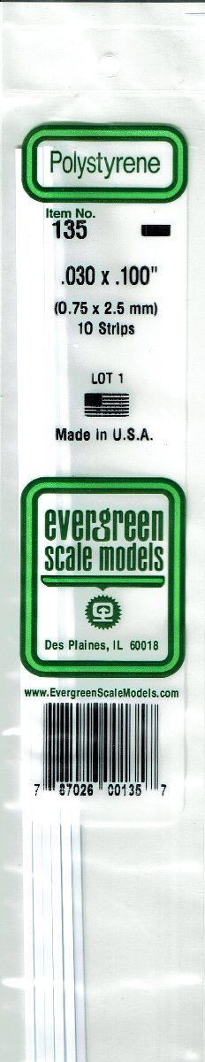 - エバーグリーン .030x.100 プラ棒 0.75x2.5mm 10本入り