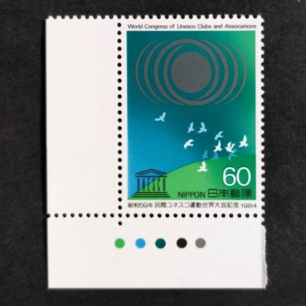- [23102509]【民間ユネスコ運動世界大会記念】単片 CMカラーマーク付「鳩と地球とシンボルマーク」60円 1984年発行 美品*