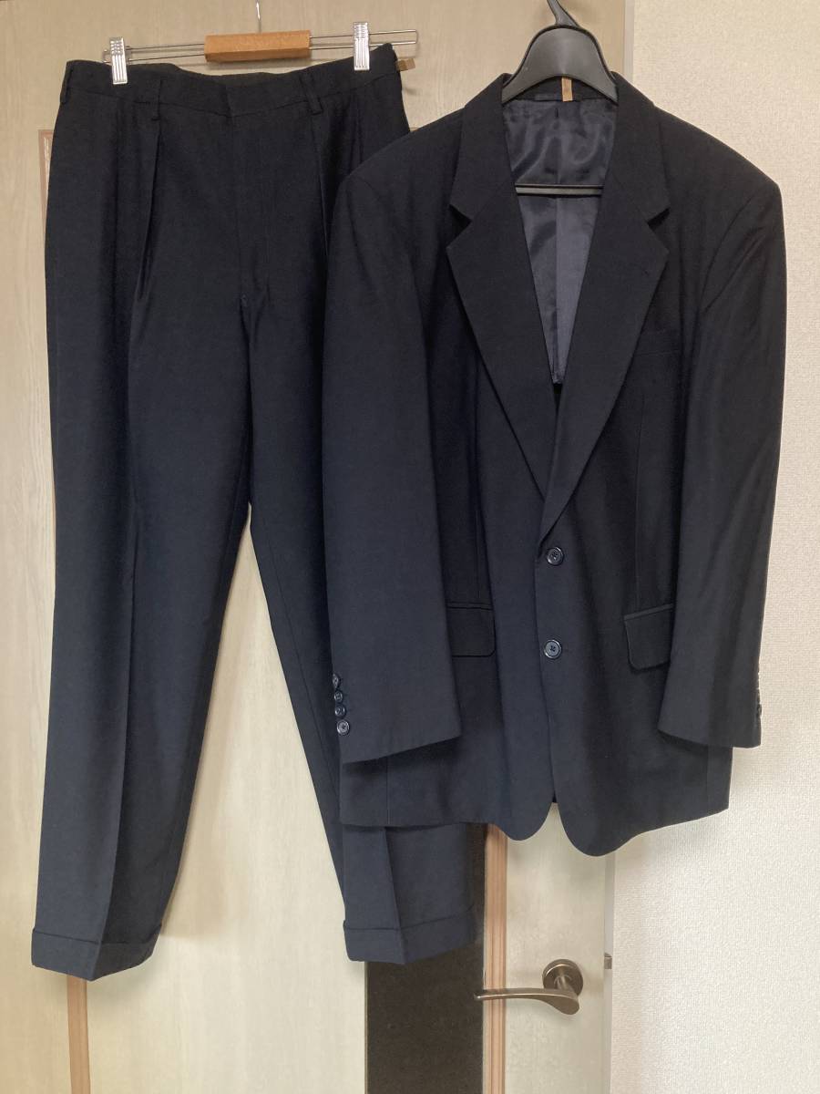 - ★オーダーメイド シングル スーツ セットアップ 上下セット 背抜き ネイビー 紺色 無地 ネームあり メンズ ノーブランド クリーニング済
