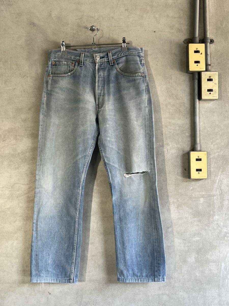 > 90s 90年代 95年 ビンテージ リーバイス 501 levis ストレート デニム ヒゲ ジーンズ USA 古着 ボタン裏501 W33