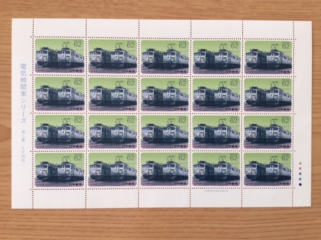 > 電気機関車シリーズ 第5集 EF30形式 1シート(20面) 切手 未使用 1990年