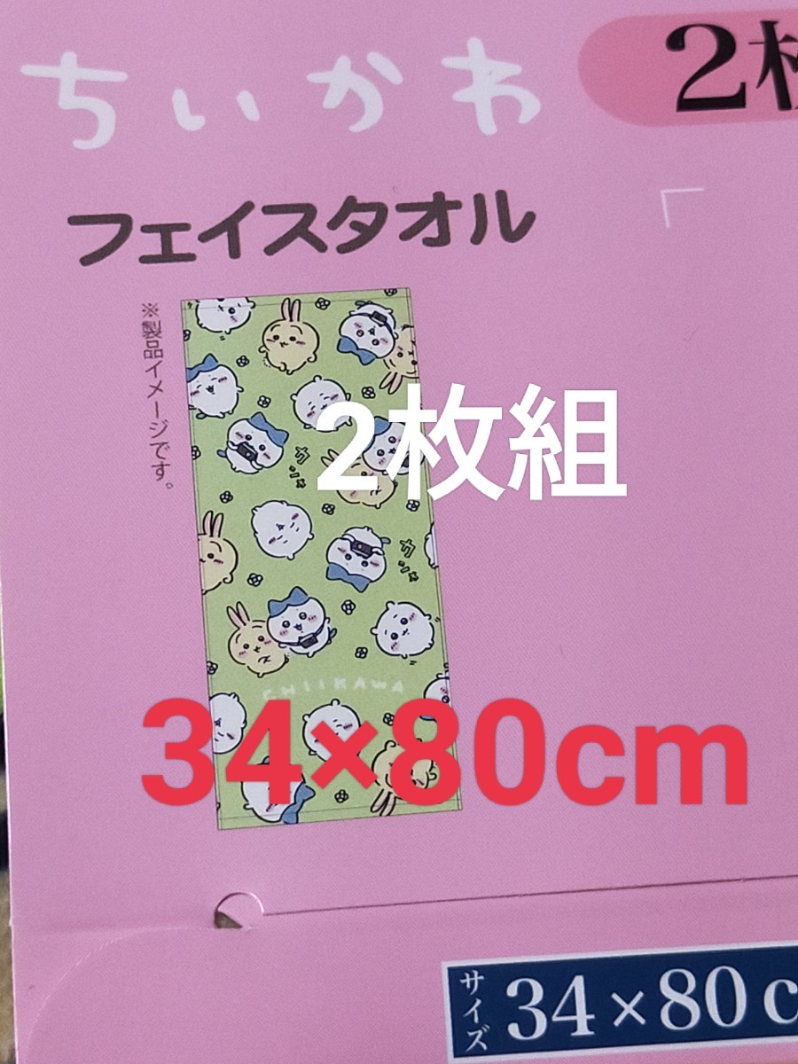 - 即決!送料無料!ちいかわ フェイスタオル 2枚組 新品タグ付き【約34×80cm】Cotton100% ハチワレ うさぎ カメラ