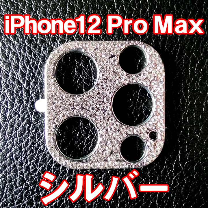 - iPhone12 Pro Max 専用 カメラレンズカバー シルバー ラインストーン キラキラ