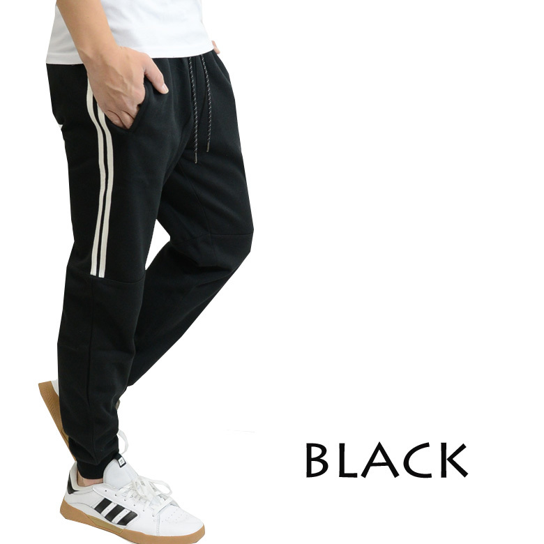 - スムースポンチ素材 2本サイドラインストレッチジョガーパンツ 46461 メンズ 新品 ブラックLL