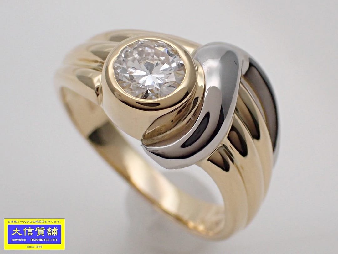 > K18+Pt900 イエローゴールド プラチナ ダイヤ リング 0.46ct 10.5号 4.8g 中古A+ 【送料無料】 C-8962