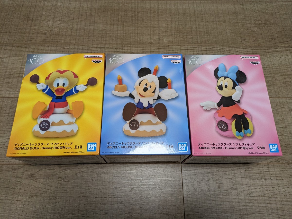 - ディズニーキャラクターズ ソフビフィギュア セット DONALD DUCK MICKEY MOUSE MINNE MOUSE Disney100周年ver. ドナルド ミッキー ミニー