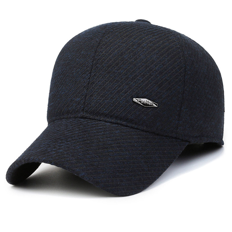 > 防寒帽子 耳あて付き キャップ メンズ 無地 厚手 暖かい 裏起毛 つば付き 冬用 ハンチング帽子イヤーマフ 防風 保温 -A-ネイビー