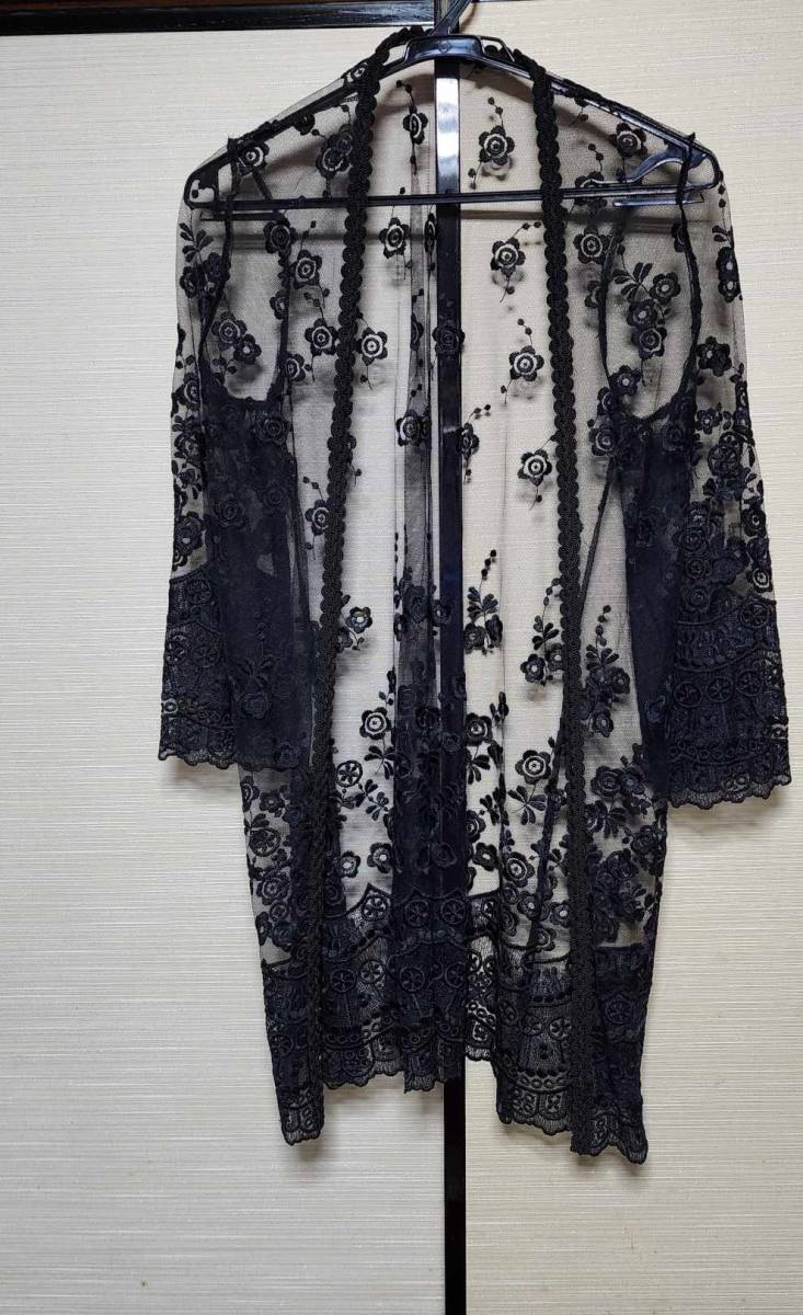 - 昭和超レトロ 前あきロングカーディガン シースルー黒 希少品