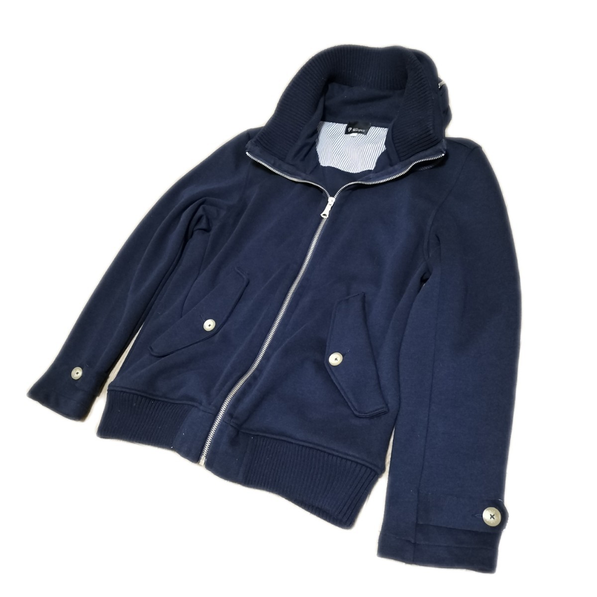 > 美品★TK TAKEO KIKUCHI スウェット ジップアップ ミリタリー ジャケット メンズ サイズL アウター 無地 ネイビー タケオキクチ 古着 USED