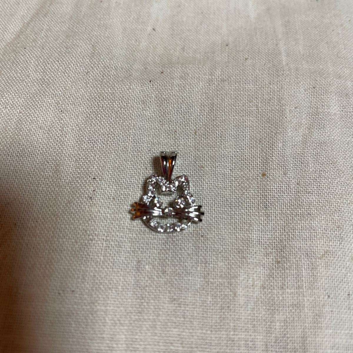 - 可愛い猫ペンダントトップ カラーストーン キラキラ チャーム パーツ シルバーカラー